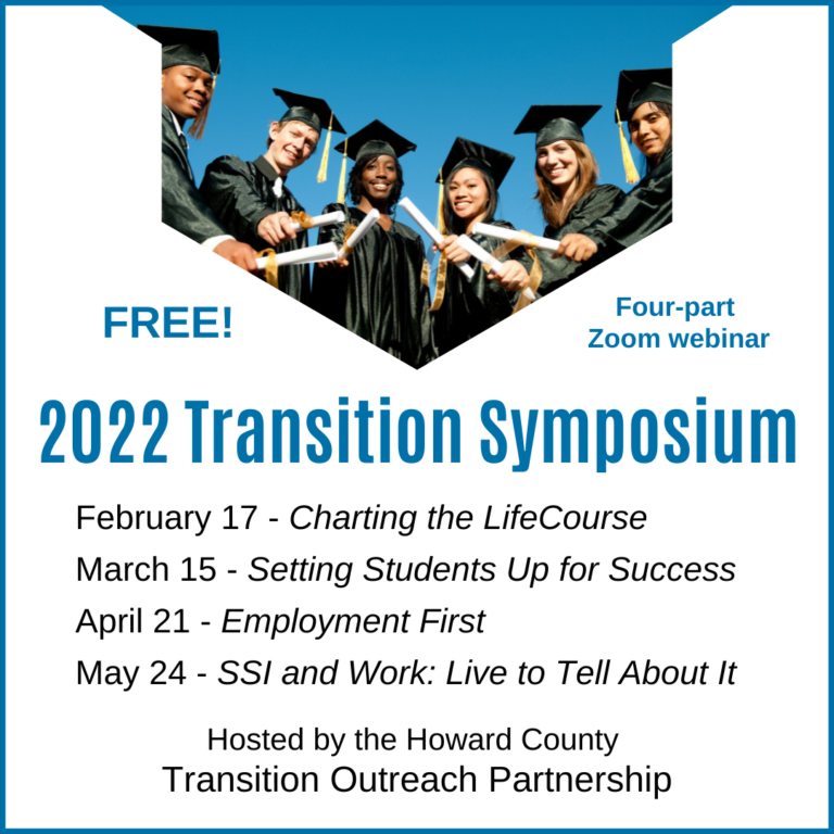 Join us for the 2022 Howard County Transition Symposium, a four-part webinar series presented monthly from February to May 2022. It is designed for transitioning youth ages 14-21 with IEP/504…